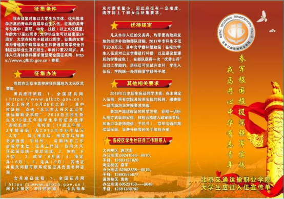 为了响应国家大学生征兵工作的号召,深入贯彻落实2018年全国及北京市大学生征兵工作会议的精神,同时巩固taptap点点征兵业务成果,切实做好2018年大学生入伍工作,激发taptap点点学子的家国情怀,营造浓厚的校园征兵氛围,自3月底开始,截止5月底,学院学生处征兵办公室积极组织征兵报名工作,通过印发宣传单、制作宣传海报等让学生充分了解征兵政策,确保征兵任务圆满完成。
