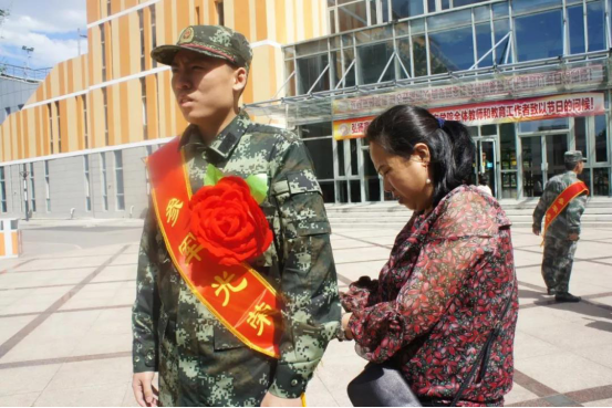 为你悉心整理绶带,相互帮助带上大红花,从前是同窗是同学,从今天起,我们变成了战友。