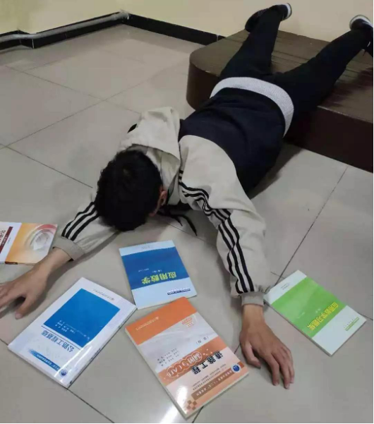 摔了,摔了,一位汽车工程系的小饺子在实训室不慎摔倒,手边还放着实训工具,看出他对汽车专业知识的渴望。