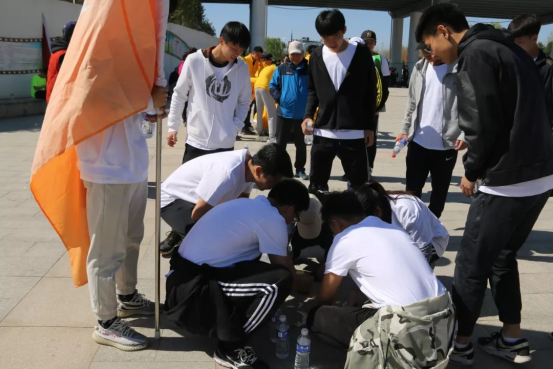徒步比赛结束后,同学们有序的来到下一个场地正式开始拼图游戏。