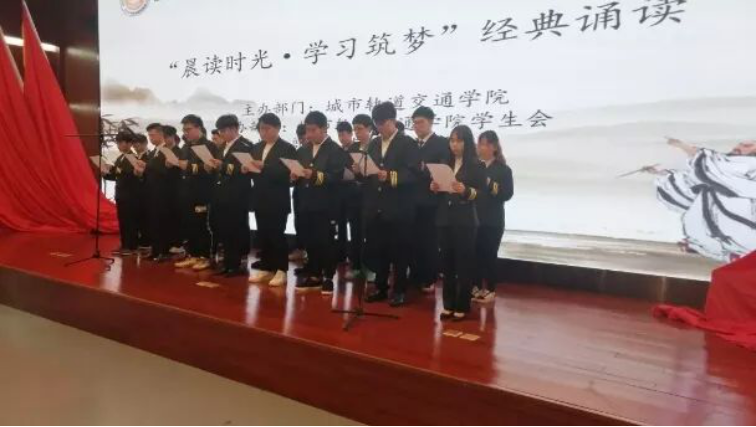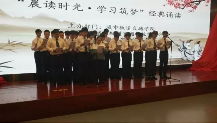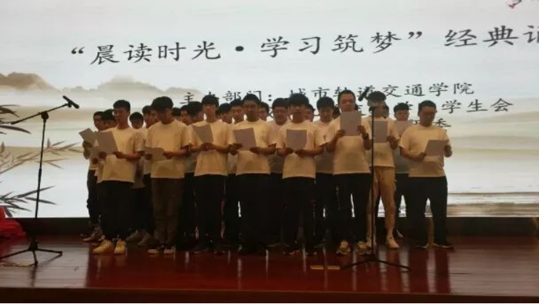 轨道学院通过诵读以达到文化熏陶、智能锻炼与人格培养的目的。了解优秀的中华文化和民族精神,从而产生民族自豪感和爱国主义情思。让优秀的中华文化和民族精神在学生的心灵中不断地产生潜移默化的作用,潜移默化地陶冶其性情。
