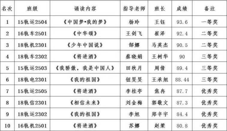 诵读比赛成绩公示