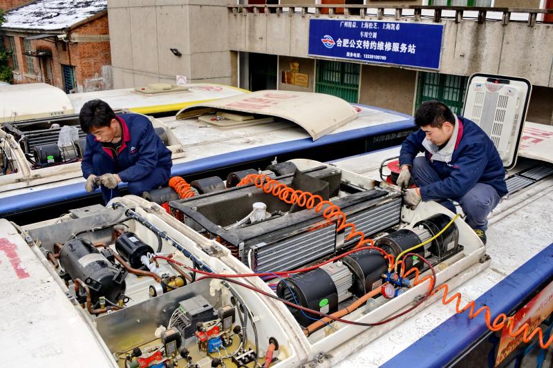 车载动力电池、电路气路、灯光制动、车载空调……安徽省合肥公交集团保修公司各修理厂提前对关键部位实行强制维保,检查率100%,不让一辆“带病”公交车上路。