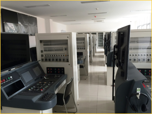 由五台1:1比例的模拟车头组成,通过投影融合技术模拟真实的地铁场景,可供地铁乘务员岗位的正常驾驶、故障处理、突发事件处理等多项工作任务的学习与训练,实现学校教学与企业需求地对接。
