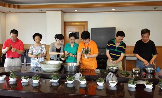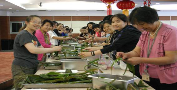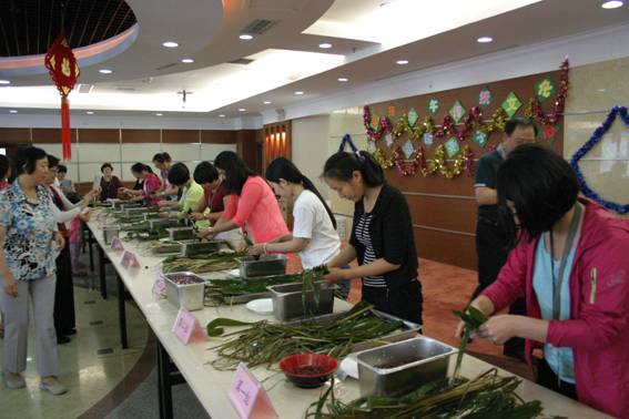 为庆祝我国端午节这一传统节日,弘扬传承中华民族优秀传统文化,同时让师生员工真切感受中国传统节日的内涵。为能够给无法回家过节的外地学生送上一个温馨的端午节,2015年6月19日中午,学院工会联合后勤服务中心和学生处分别在大兴校区、海淀校区、通州校区和劲松校区组织举行了一场别开生面的包粽子比赛。