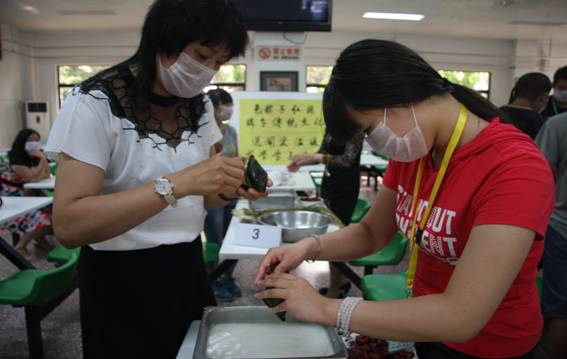 为了让更多的师生学会包粽子,学院工会特别在比赛前增加了“学艺”环节,由会包粽子的老师进行现场教学,指导包粽子的方法,师生们学的津津有味,大家在相互学习包粽子的过程中,不仅掌握了包粽子的技巧,更增进了师生间的感情,食堂到处弥漫着粽叶的幽幽清香,不时传出一阵阵欢声笑语。