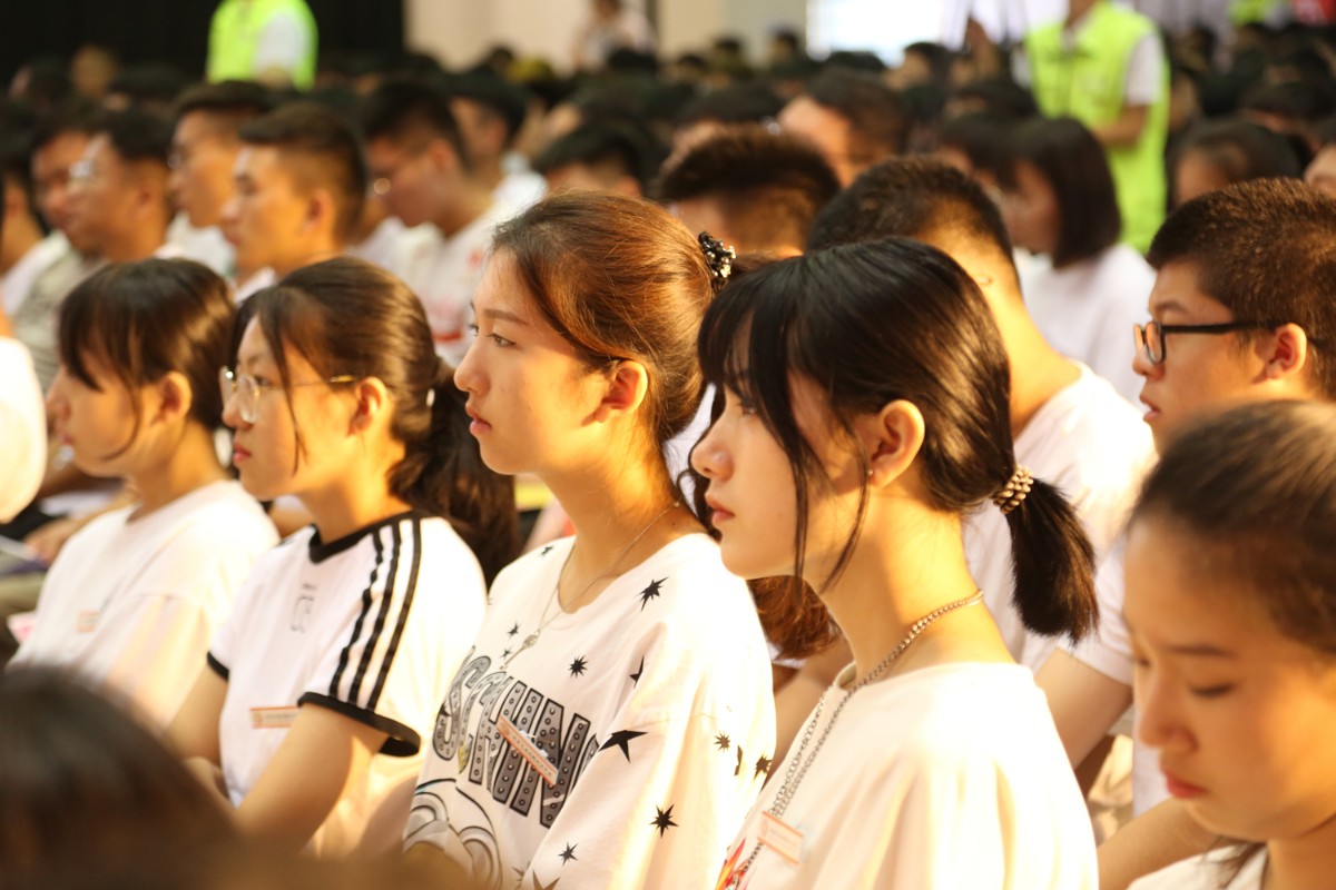 新生开学典礼在全场师生合唱《歌唱祖国》的歌声中圆满落幕。