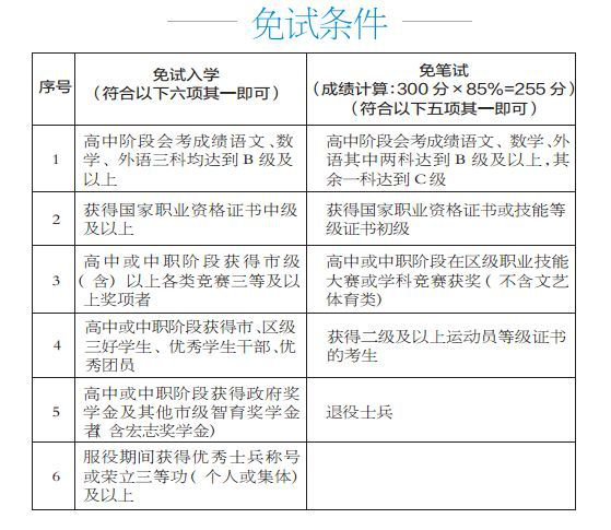 有免试;免收考试报名费;设立优秀新生奖