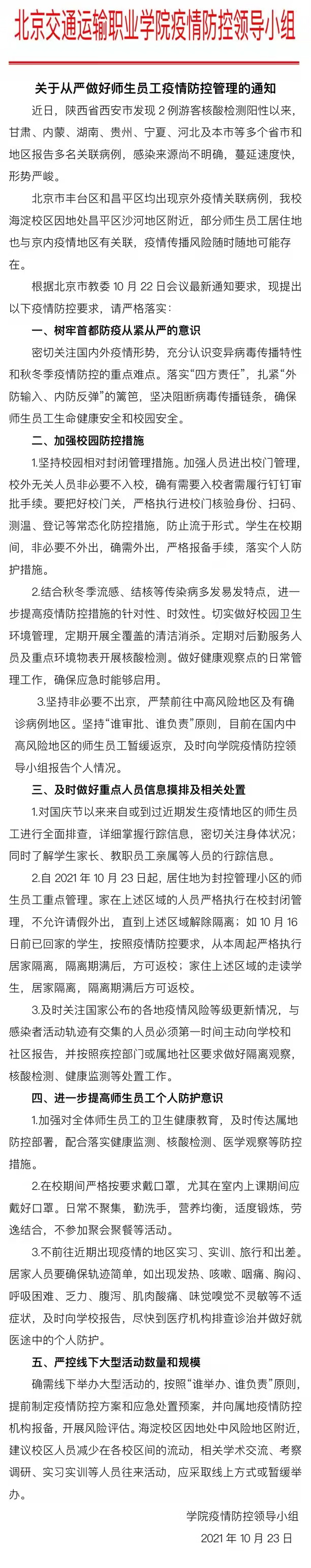关于从严做好师生员工疫情防控管理的通知