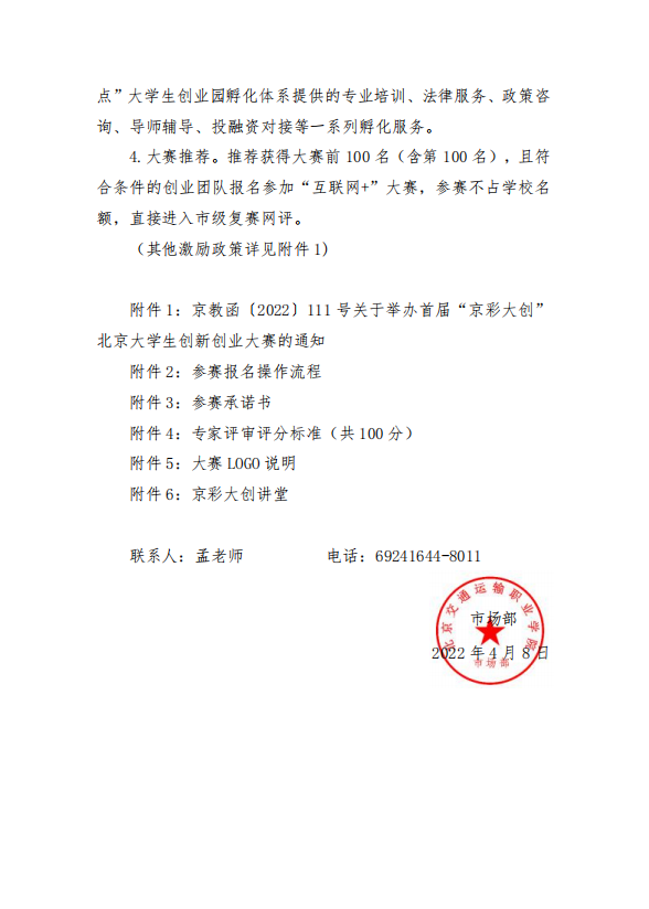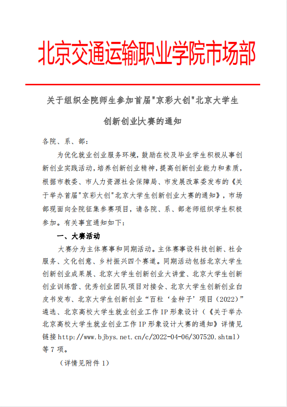 关于组织全院师生参加首届“京彩大创”北京大学生创新创业大赛的通知