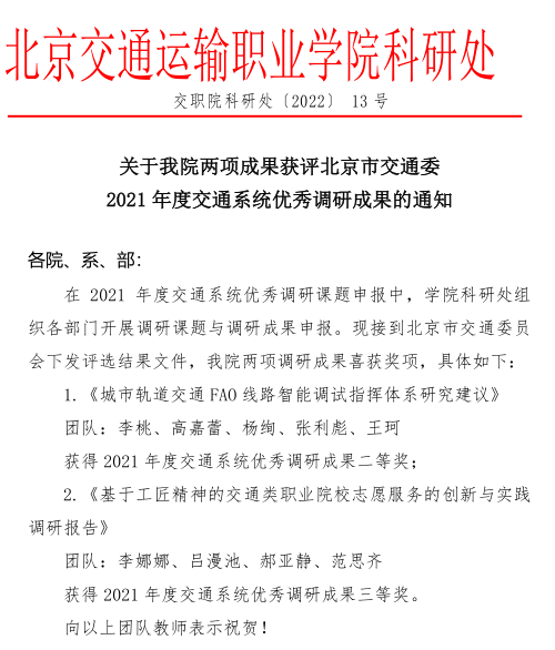 科研处-关于taptap点点两项成果获评北京市交通委2021年度交通系统优秀调研成果的通知