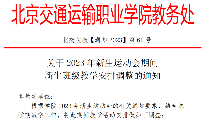 关于2023年新生运动会期间新生班级教学安排调整的通知