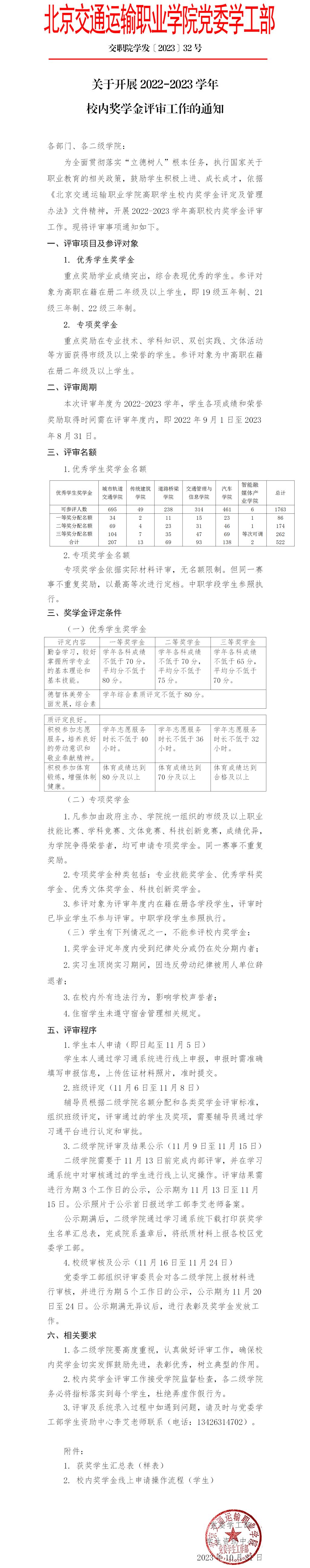 关于开展2022-2023学年校内奖学金评审工作的通知