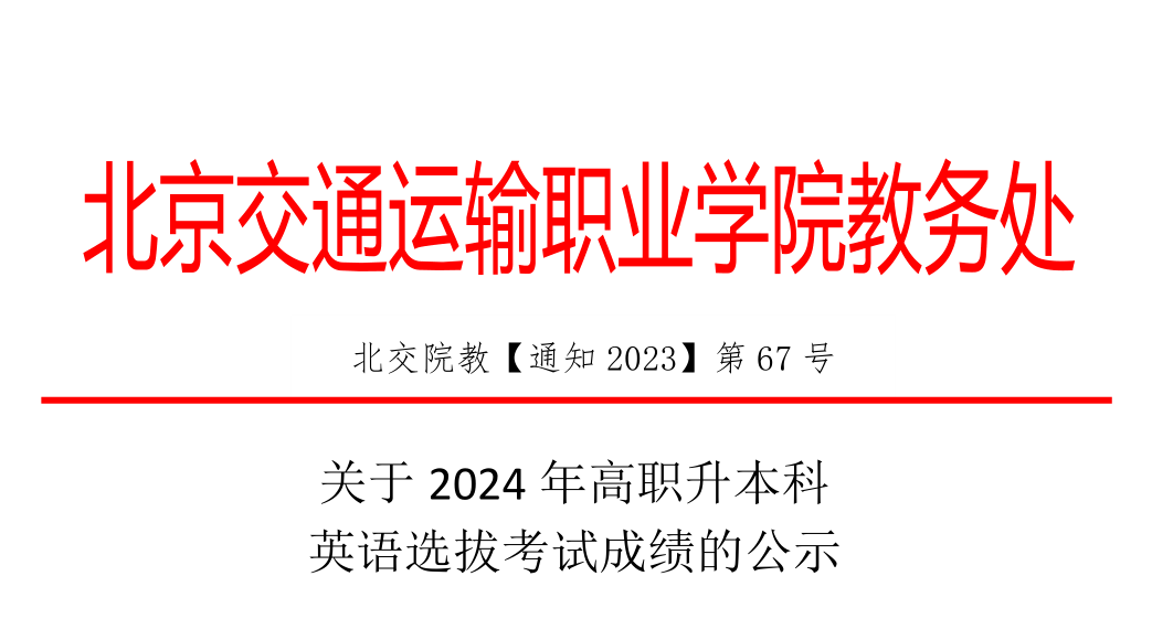 关于2024年高职升本科英语选拔考试成绩的公示