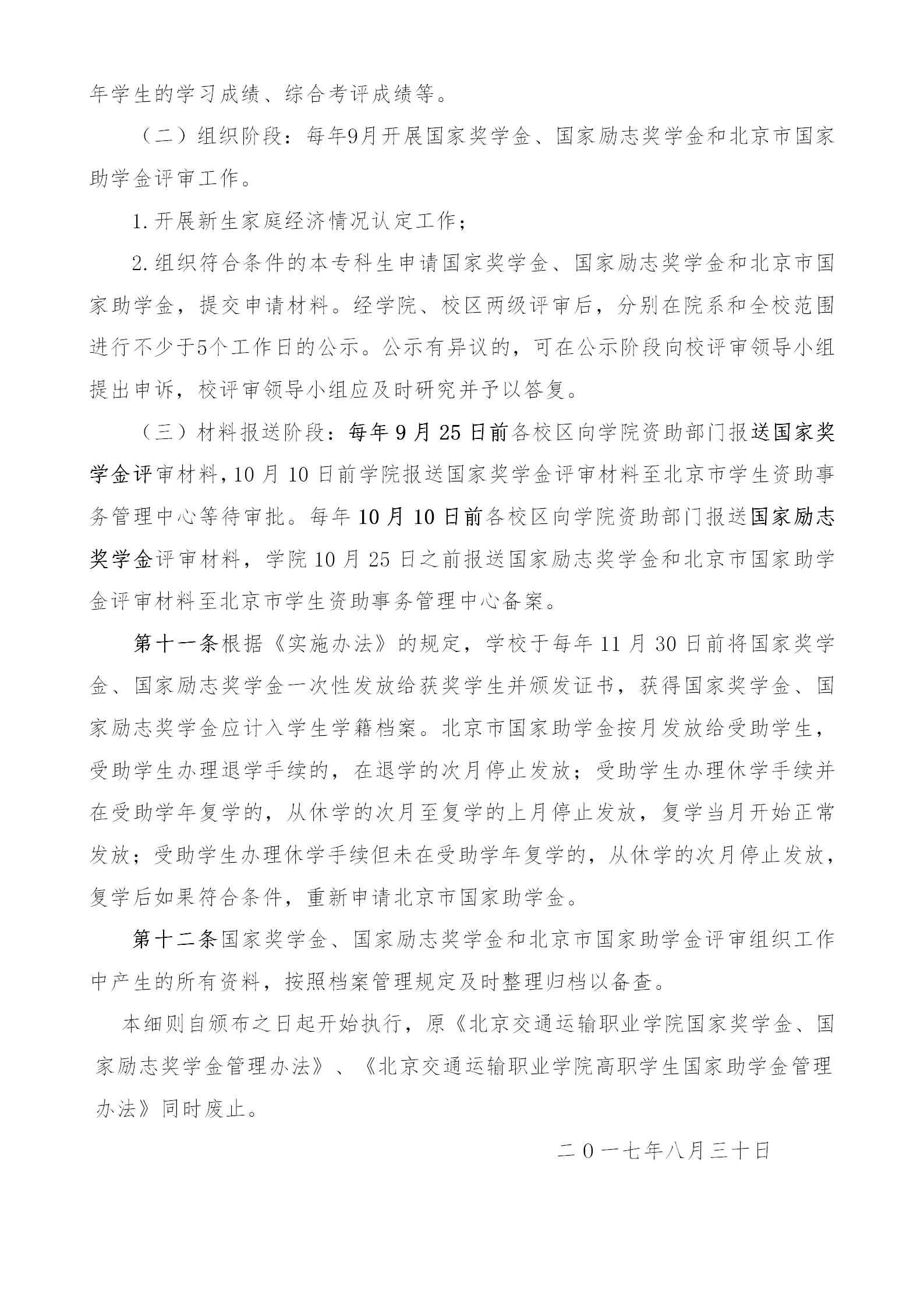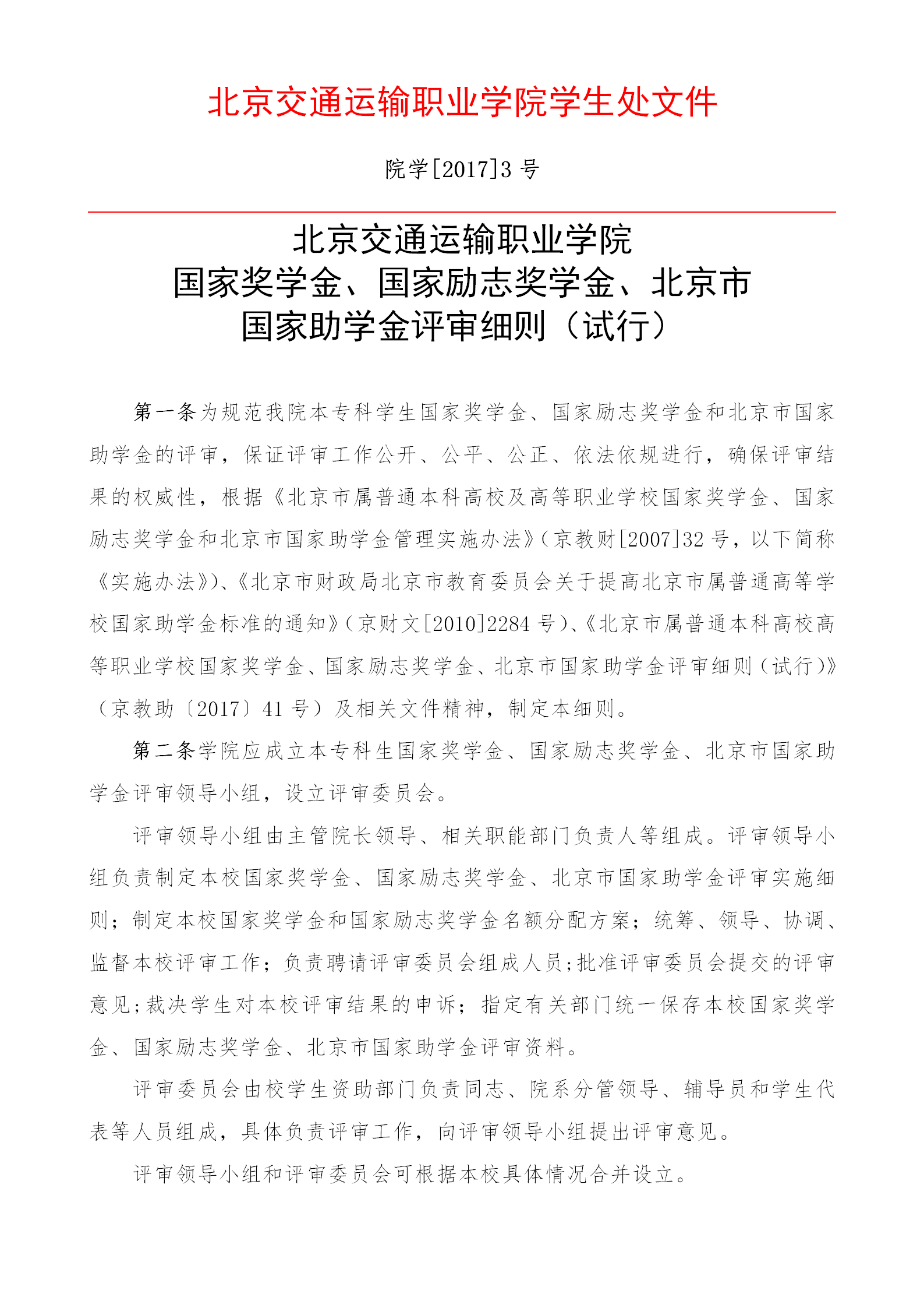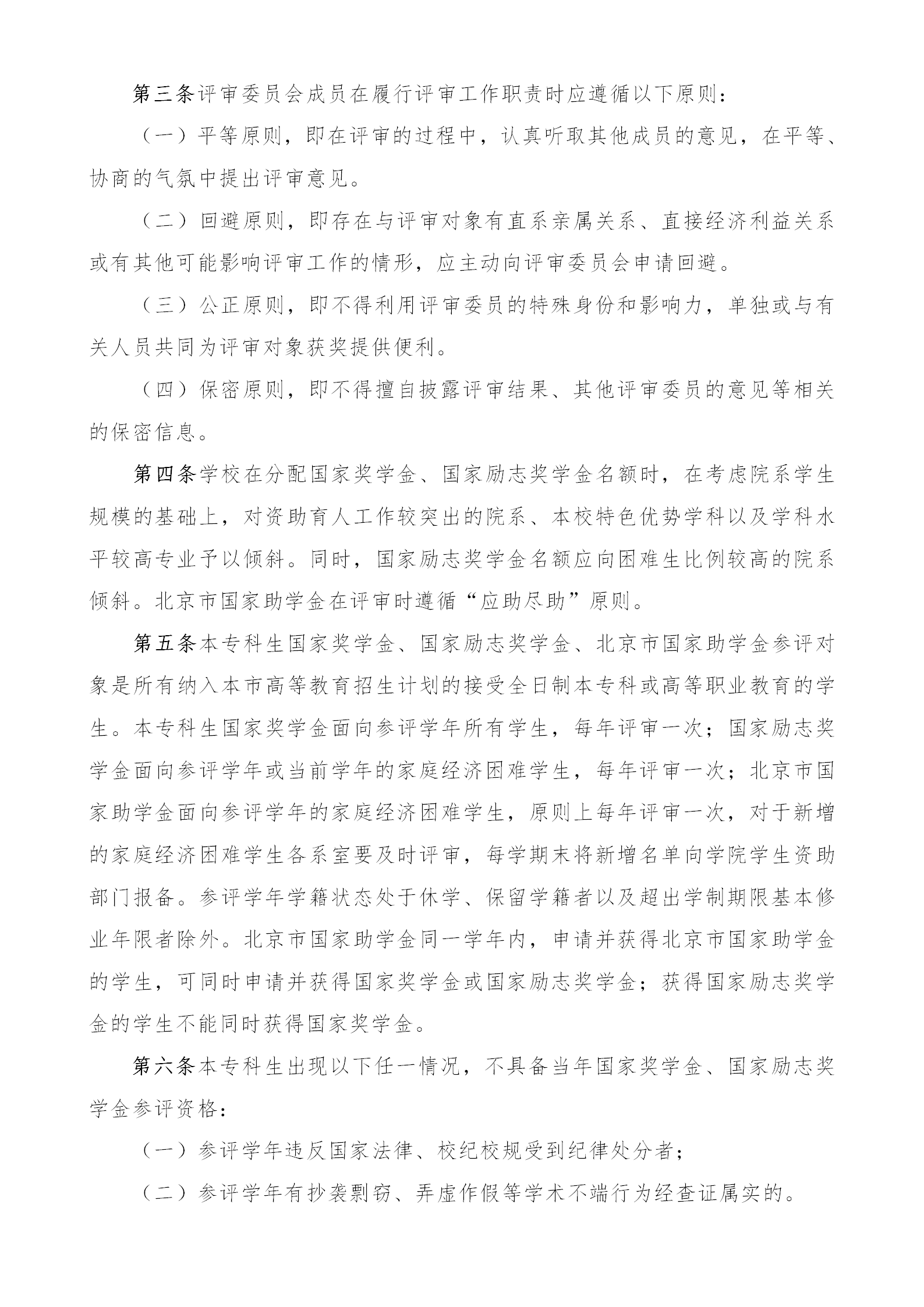 国家奖学金、国家励志奖学金、北京市国家助学金评审细则(试行)