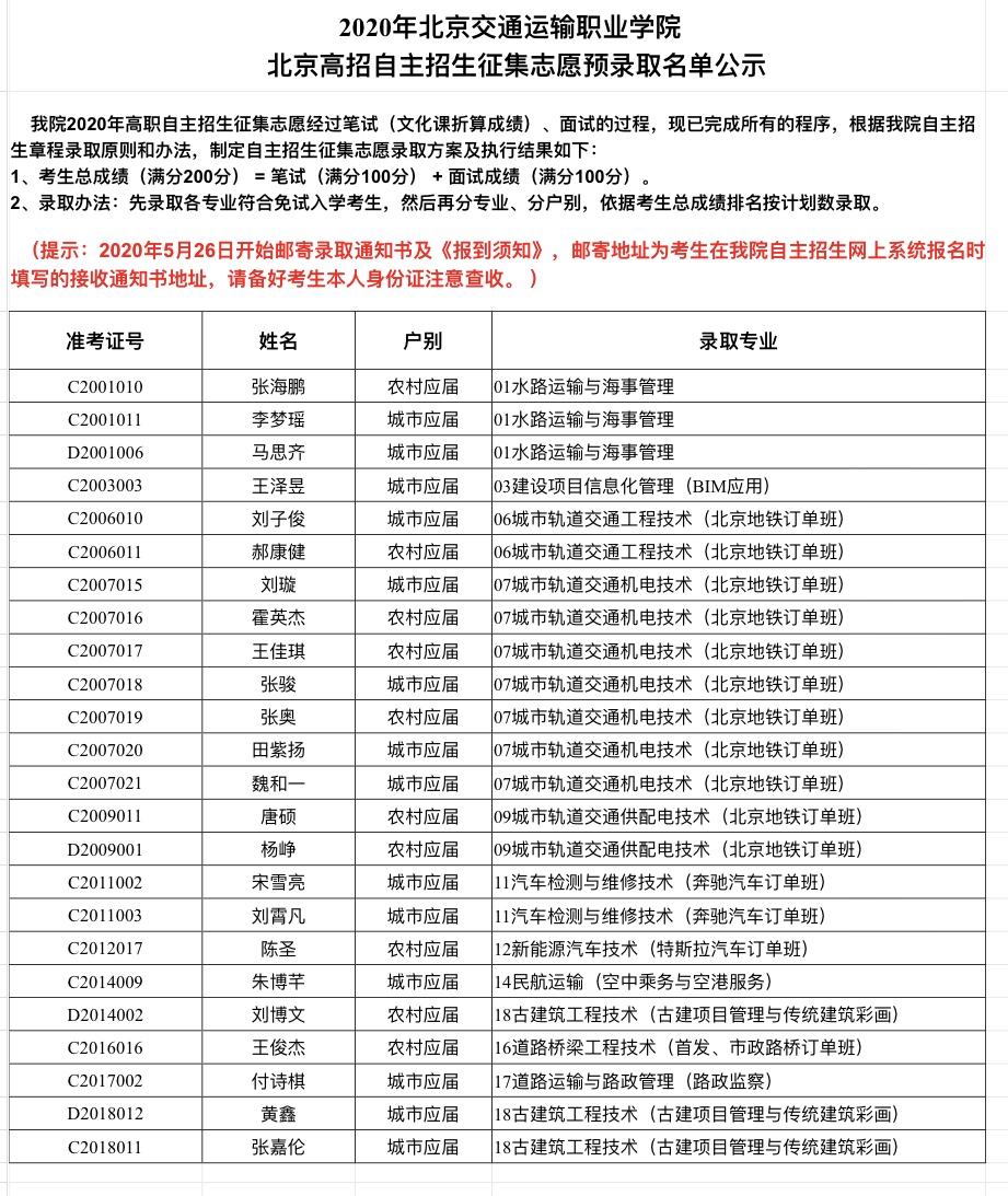 2020年taptap点点体育北京高招自主招生征集志愿预录名单公示