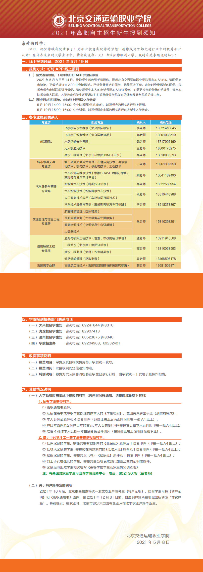 2021年自主招生新生报到须知
