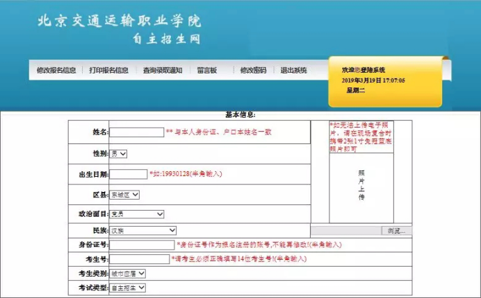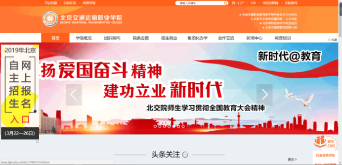 请使用电脑登陆学院官网(www. bjjt.edu.cn)点击左侧黄色浮动窗口,进入2019年高职自主招生网上报名平台进行网上报名。(建议用IE、谷歌、火狐浏览器打开)