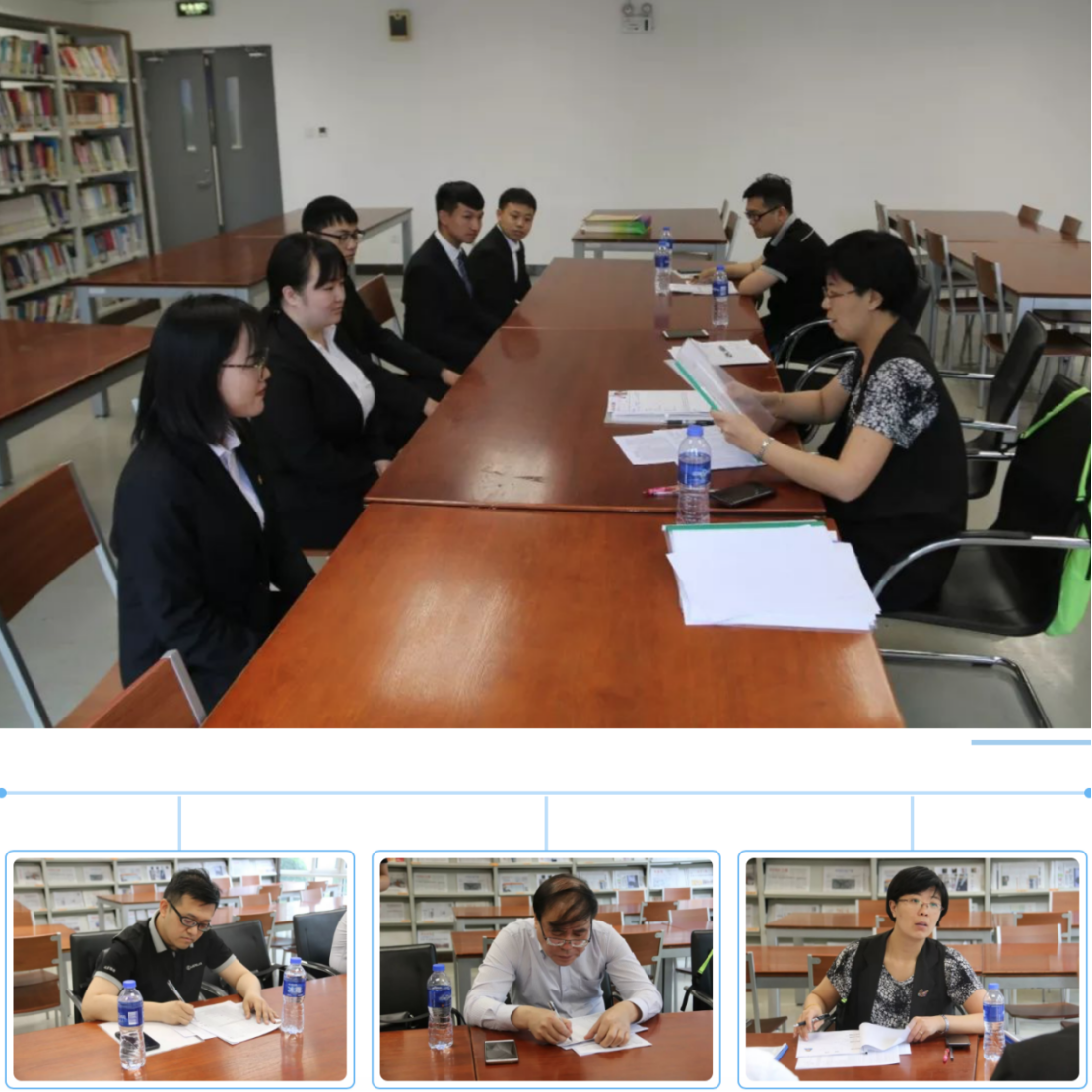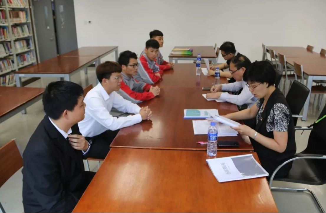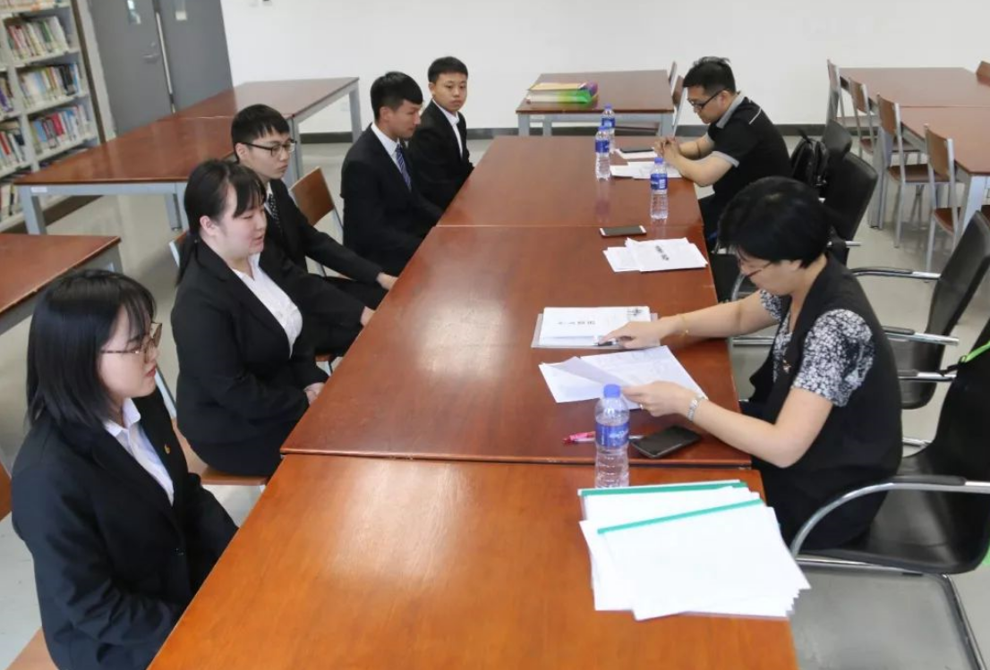 招聘会现场,市场部和专业老师组织应聘同学分组入场,他们精神饱满,机智自如地应对招聘公司提出的各种问题,小编不禁也竖起大拇指为他们点赞~在场外等候的同学们也一直在认真准备,不断跟同学交流经验体会,专业老师和辅导员也在一旁耐心指点,场面十分温馨。