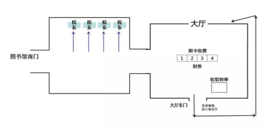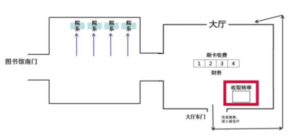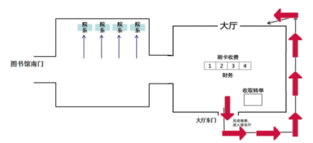 各位萌新先到室内一层图书馆进行院系登记,领取并填写转单,进行材料验收。