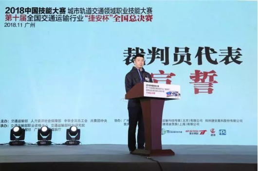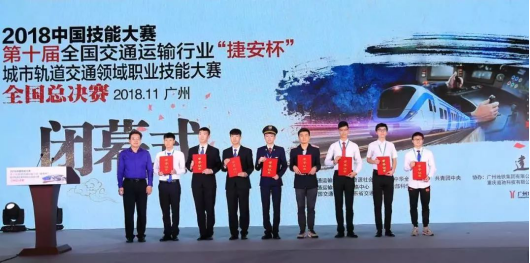 2018年11月13日下午,第十届全国交通运输行业“捷安杯”城市轨道交通领域职业技能竞赛闭幕式及颁奖典礼在广州琶洲展馆隆重举行。