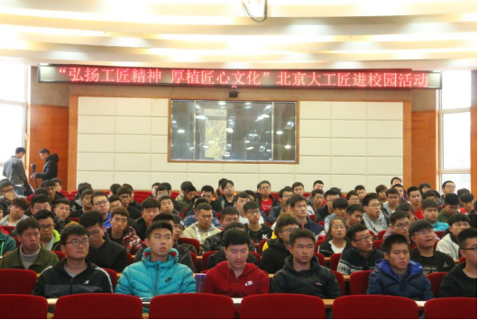为贯彻落实习近平总书记、李克强总理关于弘扬工匠精神的指示精神,今年6月,我们召开了“工匠精神进校园”活动启动仪式,将“北京大工匠”和劳模连续请进职业院校,让工匠大师在与学生的面对面交流中,通过传帮带活动,引导和激励学生传承弘扬大工匠精神、劳模精神、中国精神,提升职业素养。