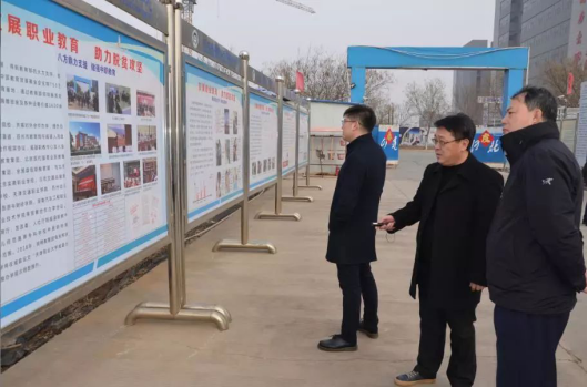 ©几位领导走访威县职教中心汽车实训车间,相关人员介绍了车间目前的建设情况。