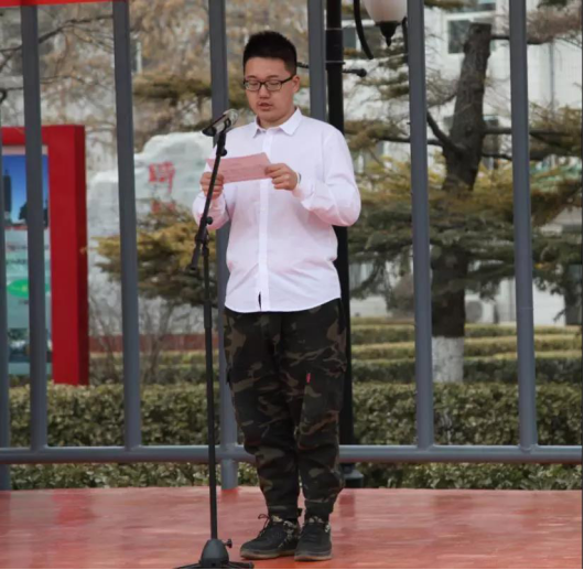 学生干部代表 18级道桥4301班胡子龙同学 宣读禁烟倡议书