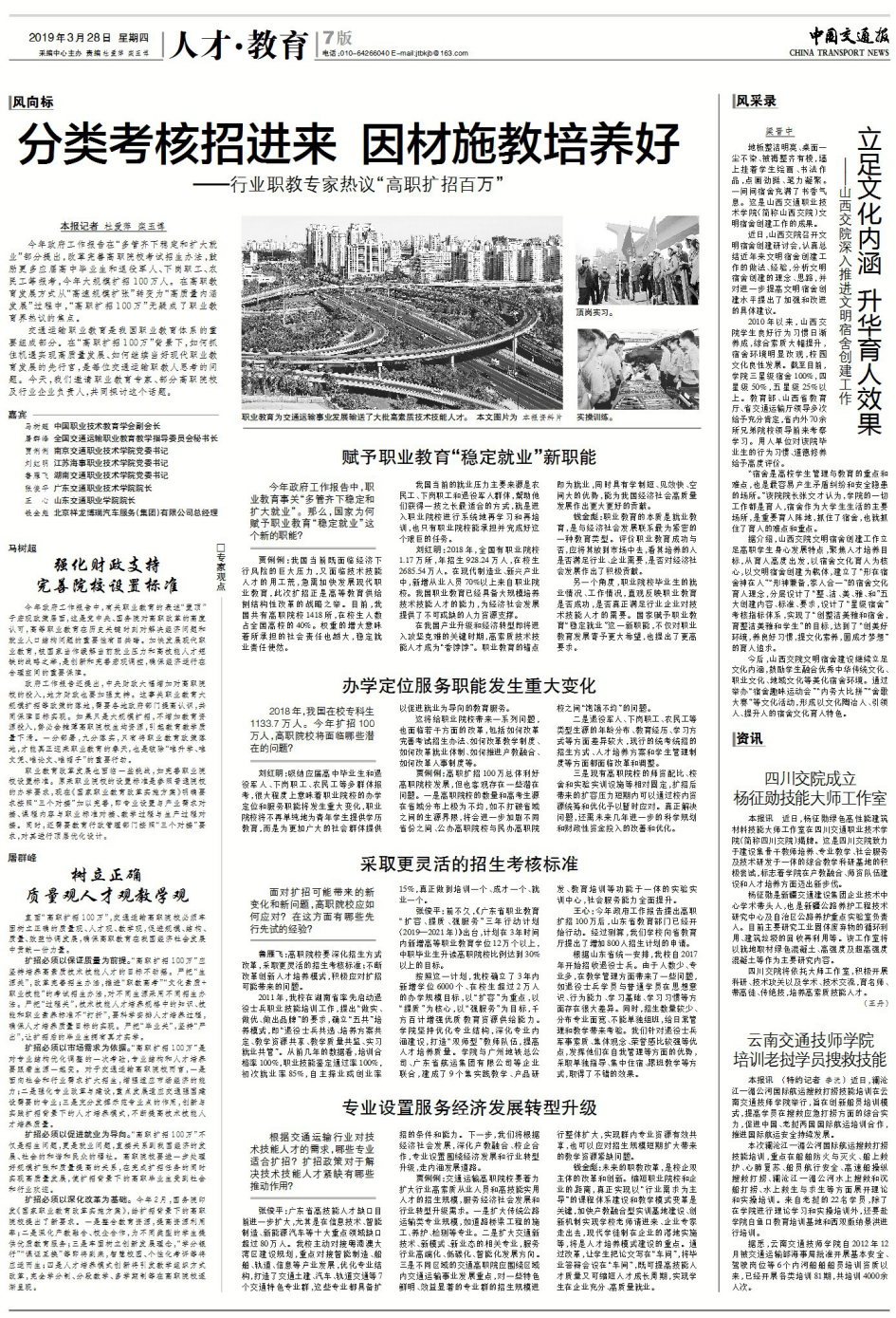交通运输职业教育是我国职业教育体系的重要组成部分。在“高职扩招100万”背景下,如何抓住机遇实现高质量发展、如何继续当好现代职业教育发展的先行官,是每位交通运输职教人思考的问题。今天,我们邀请职业教育专家、部分高职院校及行业企业负责人,共同探讨这个话题。