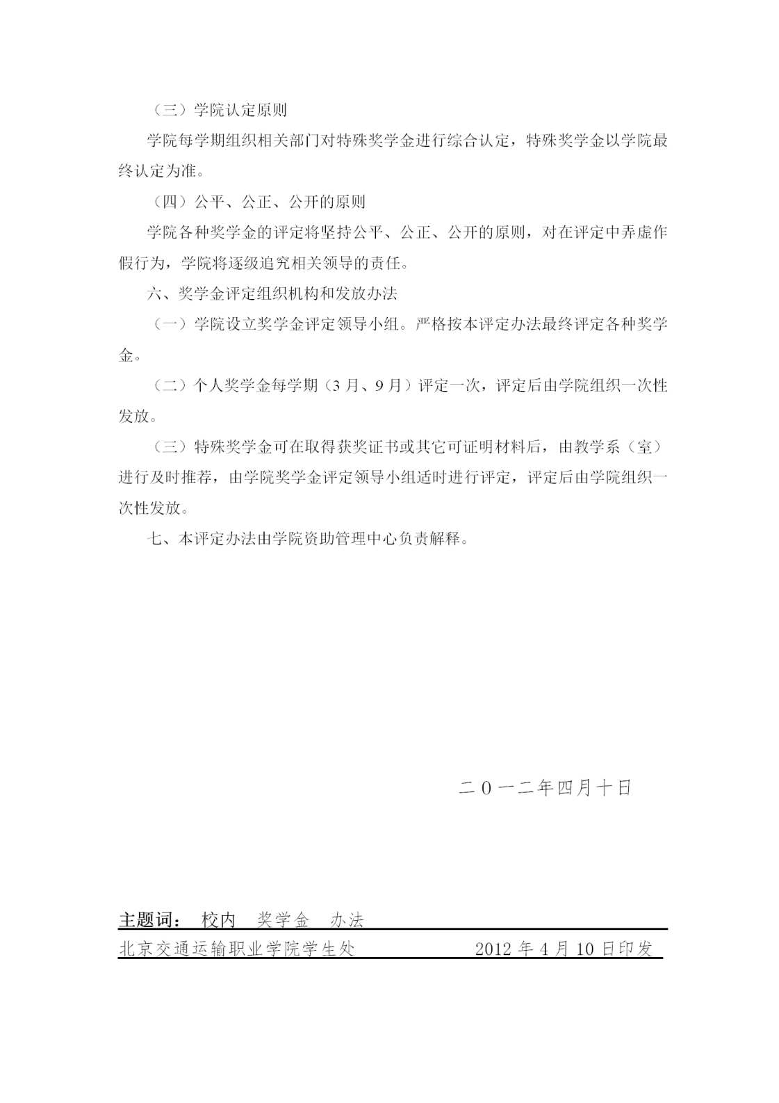 校内学生奖学金评定办法