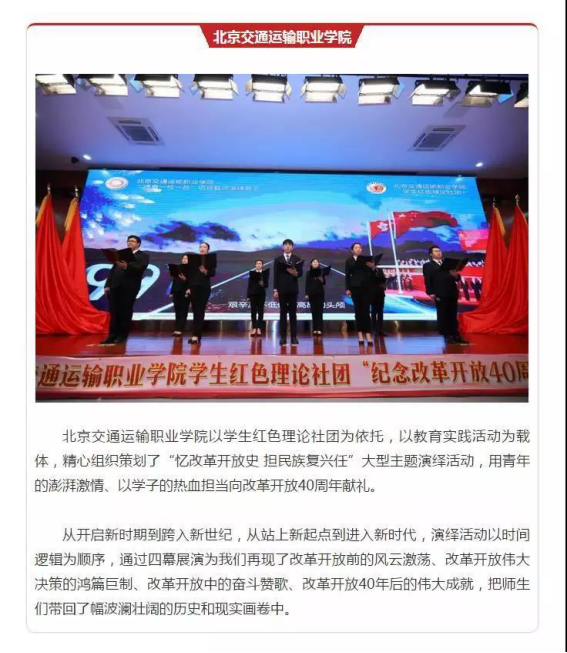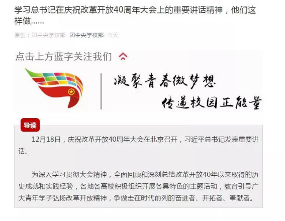 为进一步学习庆祝改革开放四十周年大会精神,鼓励广大团员青年高举习近平新时代中国特色社会主义思想伟大旗帜,坚定理想,志存高远,在决胜全面建成小康社会、全面建设社会主义现代化国家进程中奋力谱写壮丽的青春篇章,学校共青团新媒体运营中心向各高校征集开展学习庆祝改革开放四十周年大会精神主题宣传活动优秀案例。