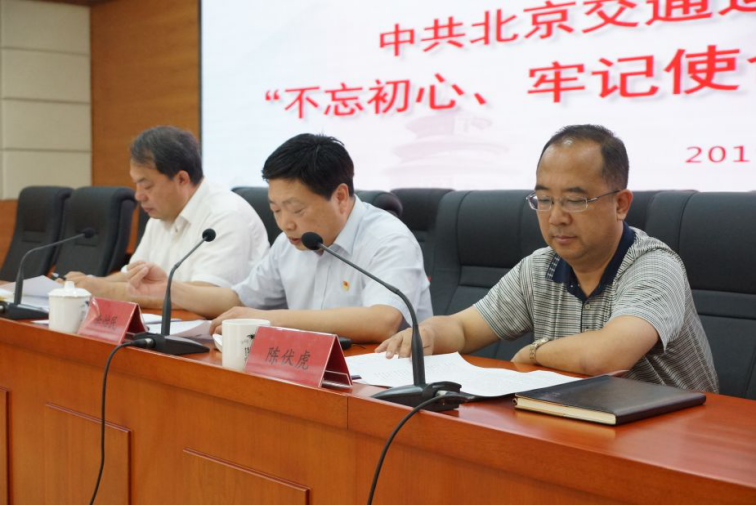 根据《中共中央关于在全党开展“不忘初心、牢记使命”主题教育的意见》和习近平总书记在中央主题教育工作会议上的重要讲话精神,按照《市委关于在全市开展“不忘初心、牢记使命”主题教育的实施方案》的具体要求,遵照市交通委《关于开展“不忘初心、牢记使命”主题教育的实施方案》的统一部署,6月17日15:30,学院于大兴校区教育中心楼二层报告厅召开“不忘初心、牢记使命”主题教育工作会议,市交通委党组“不忘初心、牢记使命”主题教育第二巡回指导组组长陈伏虎,成员邵林、张明、崔尚荣,市交通委党组第一巡察组组长吕杰、副组长葛国华,成员吴志刚、赵毅、刘洁菁等同志莅临会议。学院领导班子成员、全体在职党员参会。会议由院长马伯夷主持。