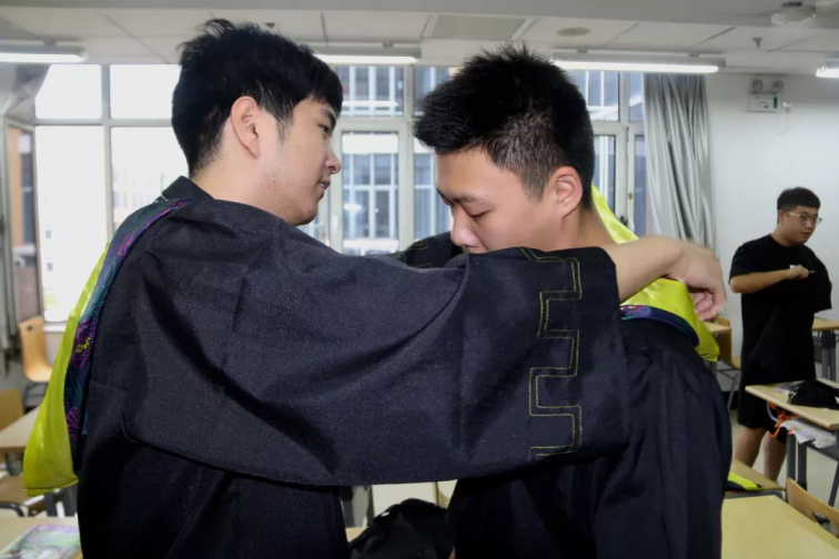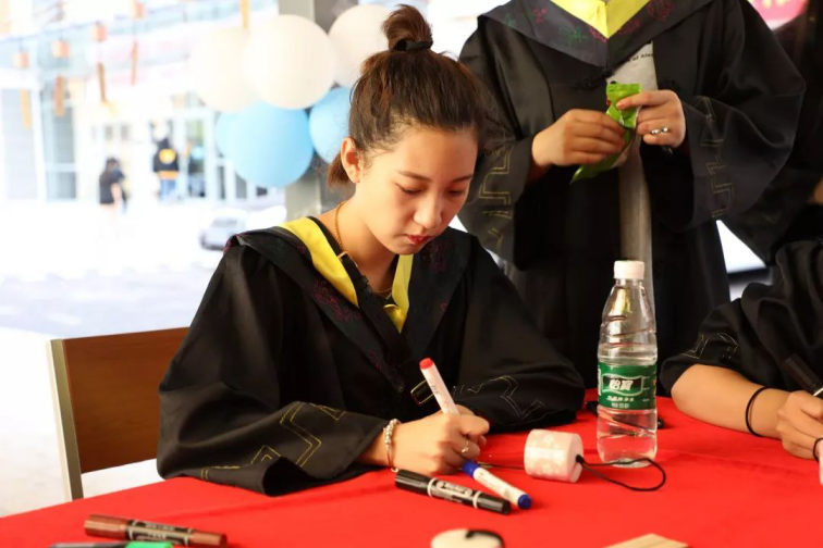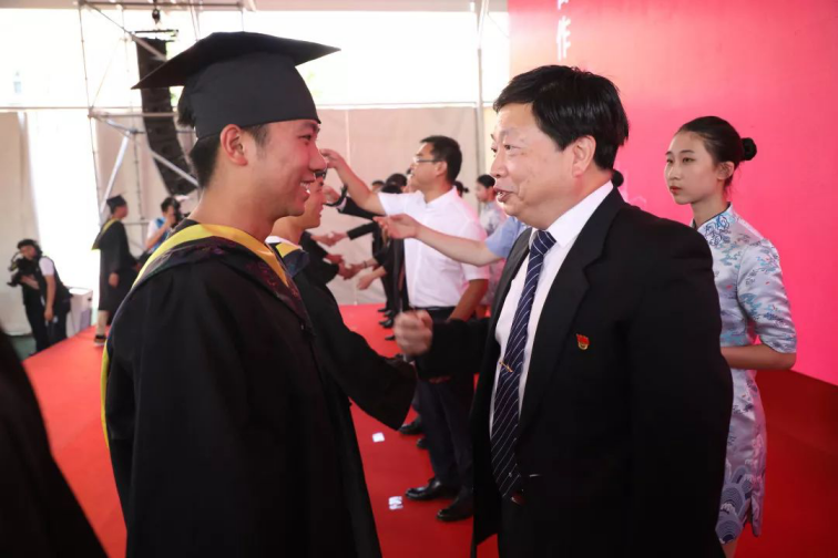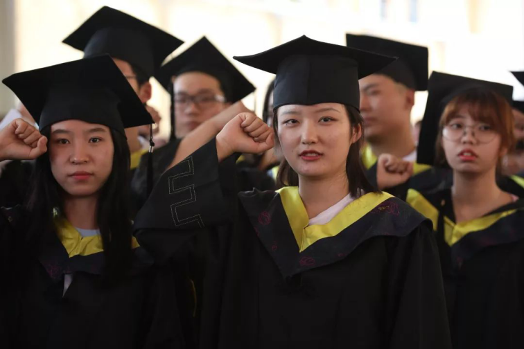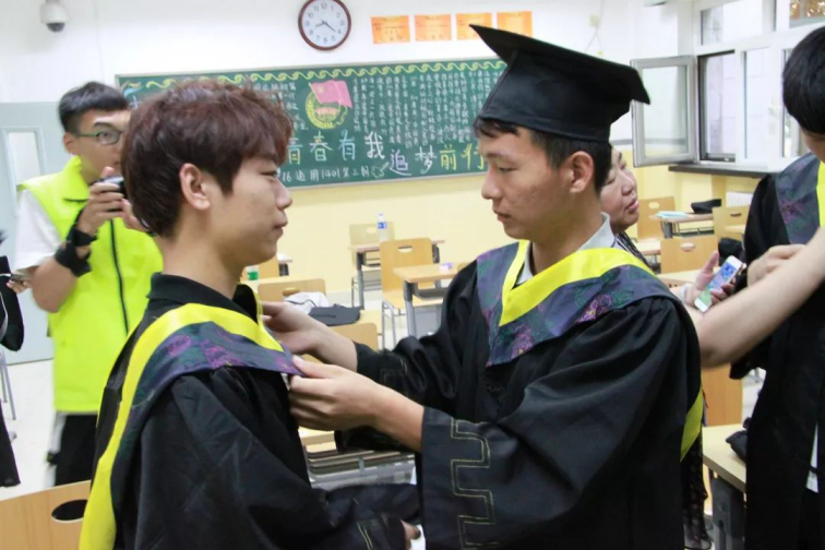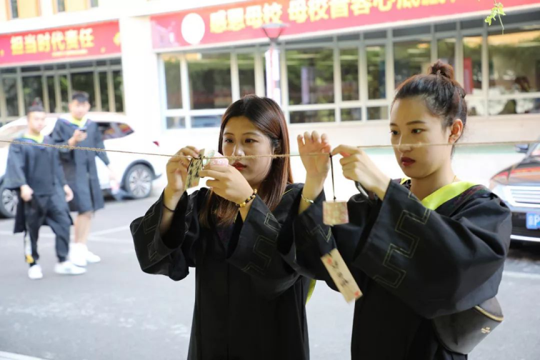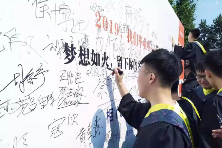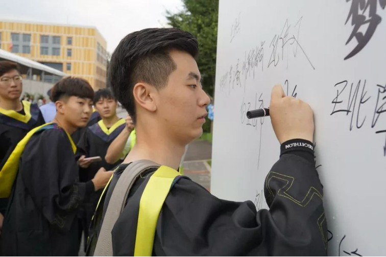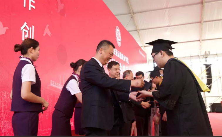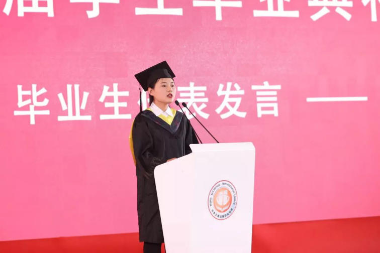 典礼现场,毕业生代表严贝贝,在校生代表朱可鑫,校友代表孙国栋分别从勤学、爱国、健康成长和爱岗敬业的角度谈人生感悟,用自己的故事告诉同学们要有爱国情怀,更要有报国之志,催人奋进,引人深思。
