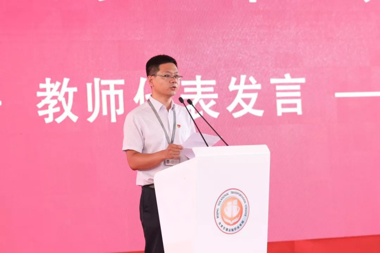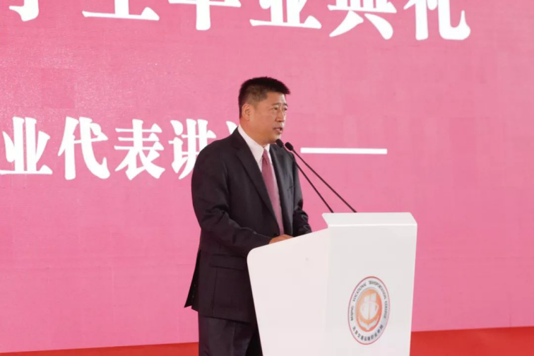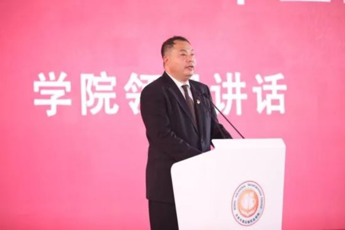 学院校企合作强强联合的典范:北京祥龙博瑞汽车服务有限公司总经理钱金彪代表企业发言,寄语同学们踏实、勤恳,用技能奉献社会,回馈企业,回报母校,努力在国家的交通强国事业中成就未来。