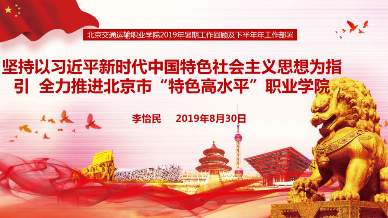 学院党委书记李怡民同志围绕“坚持以习近平新时代中国特色社会主义思想为指引,全力推进北京市‘特色高水平’职业学院”这一主题,对学院2019上半年以及暑假期间党委工作进行回顾,并部署下半年工作。