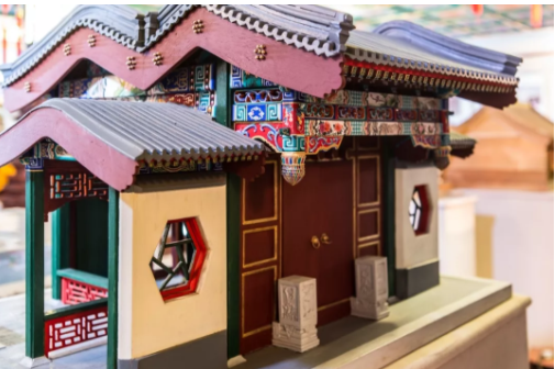 木质的建筑模型,它虽然小,但它依旧保持着那古朴美丽的红色,依旧有建筑那种气势,精致更为它增添了一份时光流转之美。