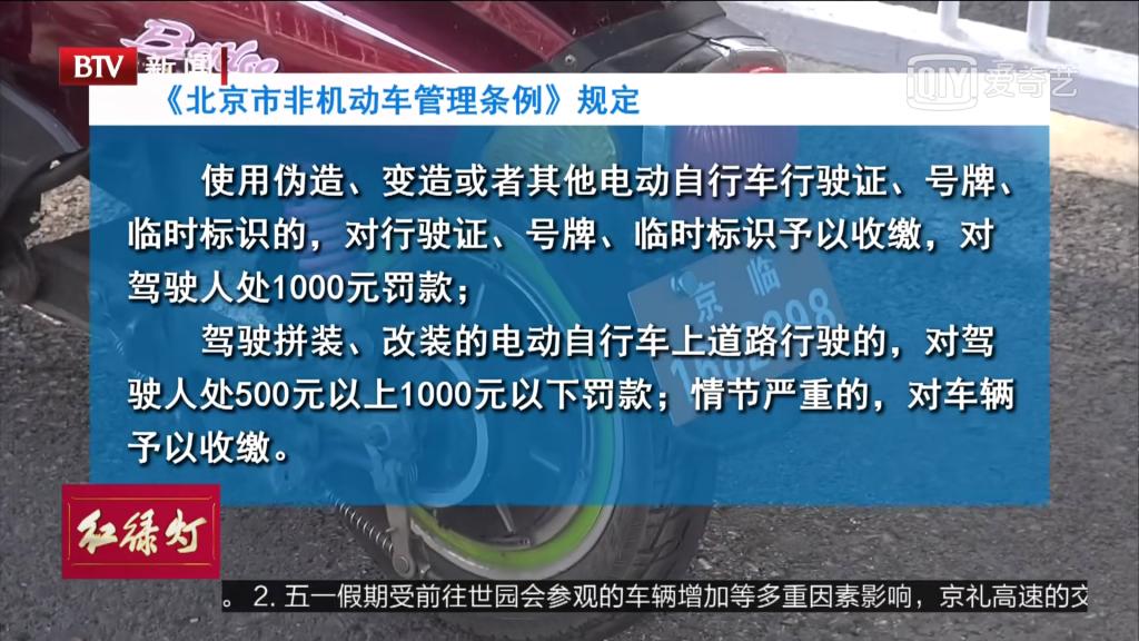 根据北京市交管部门透露,根据《北京市电动自行车过渡期登记和通行管理办法》,电动自行车临时标识申领业务将于4月30日截止,5月1日起,未按规定申领临时标识以及未按规定登记注册并悬挂号牌的电动自行车均不得上路行驶,否则则交管部门将依法予以处罚。