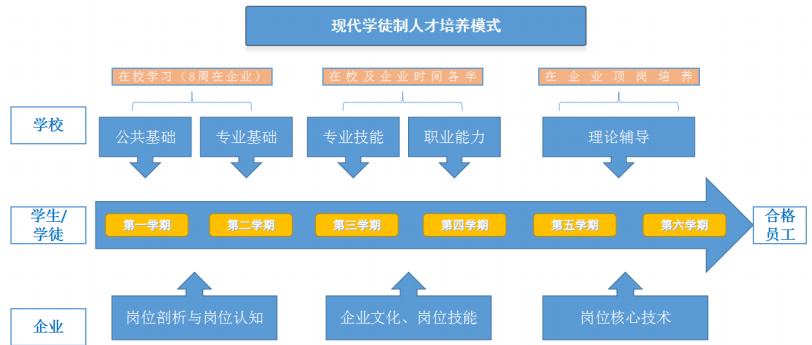 培养模式:首发公路工程师学院实施“首发养护现代学徒制”的培养模式,采用课程学 习和实践训练相结合的培养方式。校企共同制订现代学徒制人才培养方案,依据 最新高速公路养护技术制订课程标准,推行“1+X”证书制度。