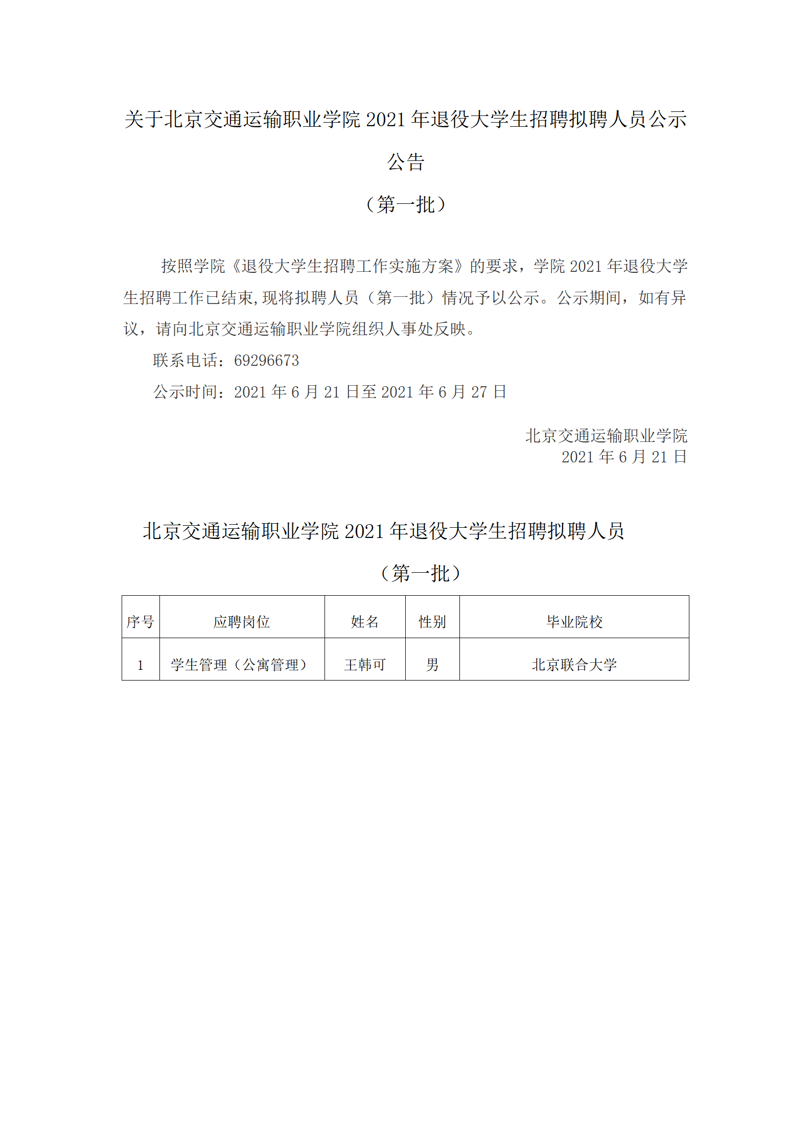 关于taptap点点体育2021年退役大学生招聘拟聘人员公示公告(第一批)