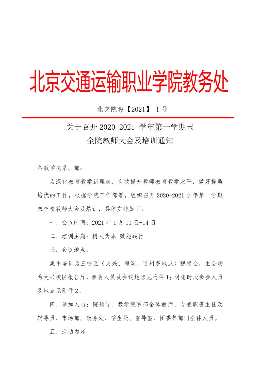 关于召开2020-2021学年第一学期末全院教师大会及培训通知