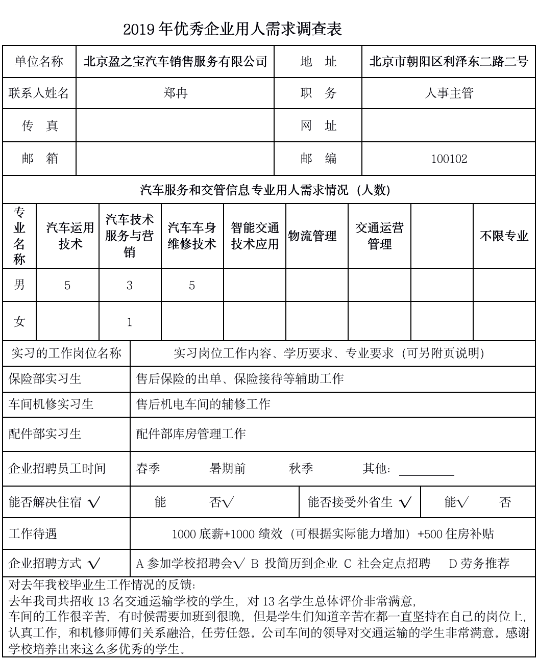 北京盈之宝汽车销售服务有限公司欢迎实习生的加入,并为所有实习岗位预留了正式编制。