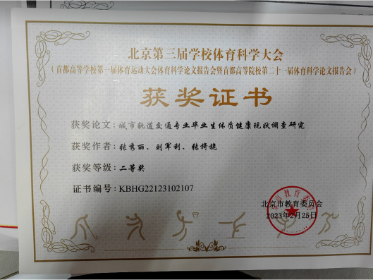 张秀丽老师的论文《城市轨道交通专业毕业生体质健康现状调查研究》获得二等奖