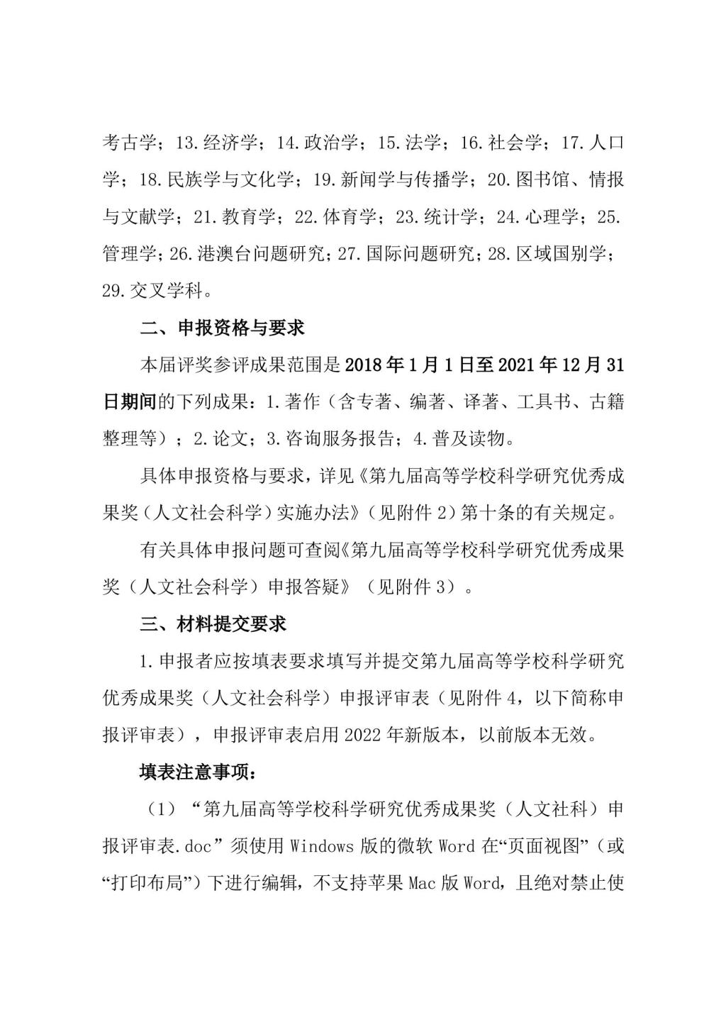 关于教育部第九届高等学校科学研究优秀成果奖(人文社会科学)申报工作的通知