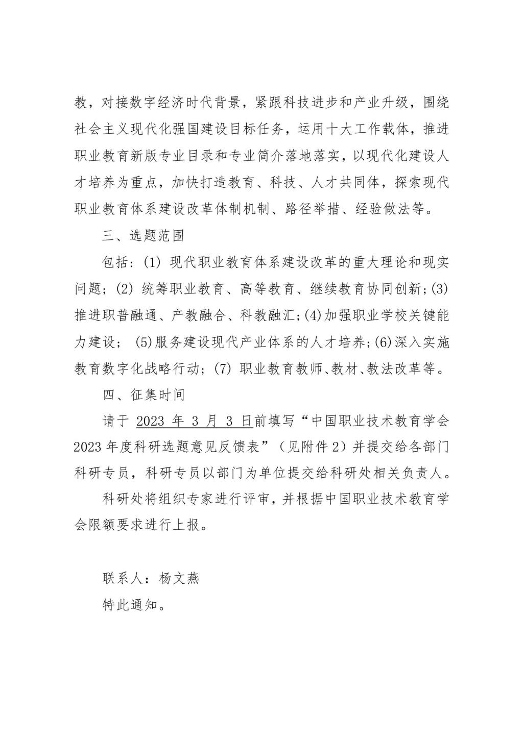 关于中国职业技术教育学会征集2023年度科研选题的通知