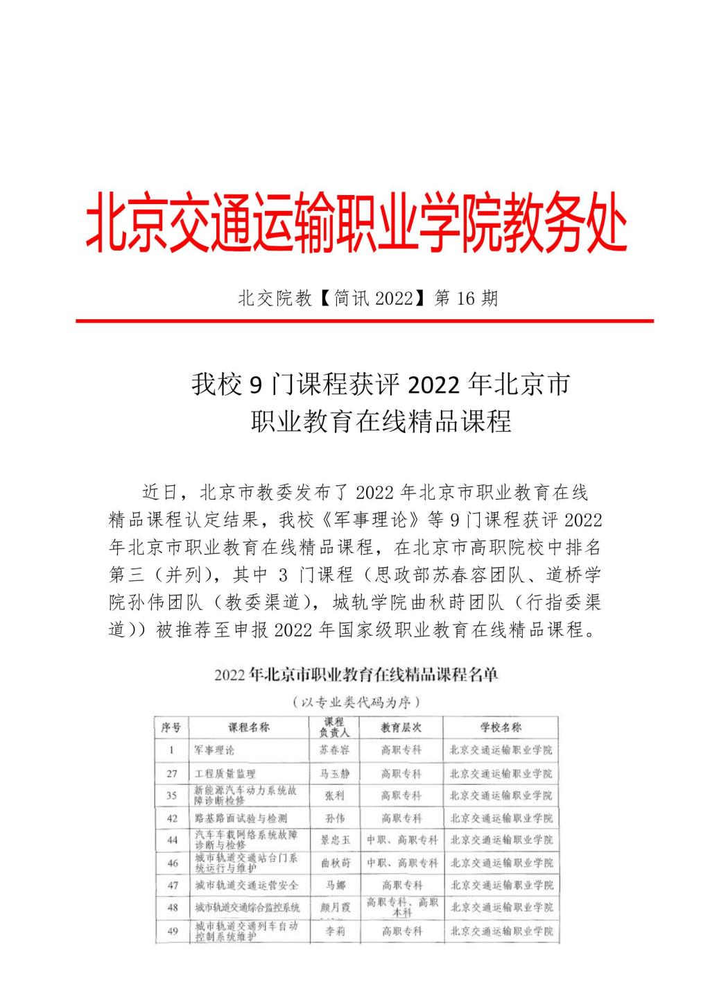 ● 北京市交通委直属的唯一公办高职